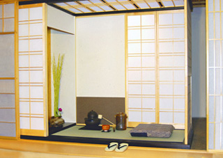 Eine stilvolle japanische Atmosphäre zum Genießen und Entspannen. Mit geschlossenen Shojitüren bietet er die Möglichkeit zur Meditation, Teezeremonie oder einfach nur Zum Ausruhen. |